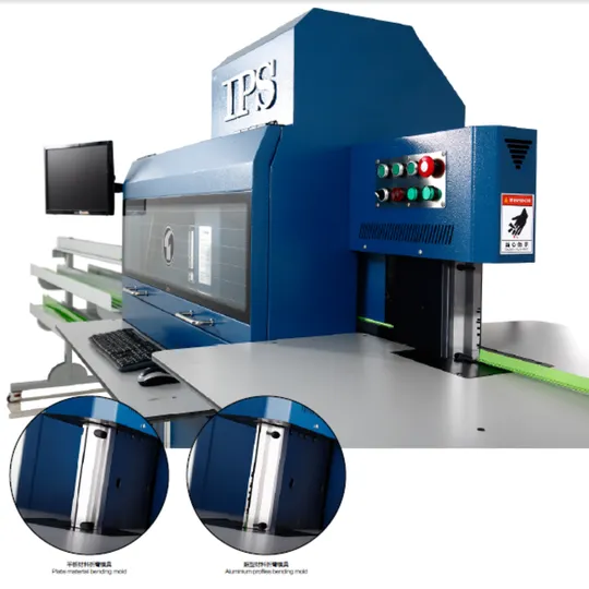 The TPS Automatic Multi‑Functional Channel Letter Bending Machine (Model TP‑S9710) is a high‑precision CNC workhorse designed for bending, slotting, notching, and flanging a broad range of materials—stainless steel, aluminum, galvanized steel, strip metal, and aluminum profiles—into custom channel letters and signage components. With its advanced 7‑axis control system driven by four servo motors and three stepper motors, it delivers exact V‑cuts at angles ranging from 45° to 140°, accommodating material heights up to 175 mm (flat) and thicknesses up to 1 mm for stainless steel and 2 mm for aluminum. Operating on a 5 kW AC200V power supply (with optional 0.4–0.6 MPa air assist), it automates feeding, bending, cutting, slotting, and angle trimming for both sheet and profile work. With a 900 kg frame and CNC‐controlled motion, the TPS S9710 delivers fast, consistent, and complex bends ideal for high‑volume signage shops and fabricators seeking efficiency and accuracy.